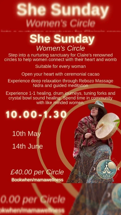 Claire, the founder and heart of Mama Wellness, remains the guiding presence, After a time of profound transformation, her offerings have expanded and matured - moving beyond mother and baby work and into the wider landscape of womb wisdom, feminine embodiment and earth connected healing.